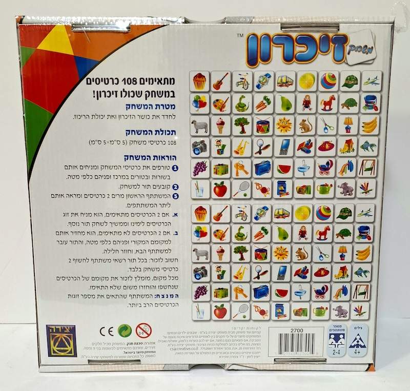 משחק זיכרון: 108 כרטיסים של כיף זיכרון ופיתוח מיומנויות חשובות!