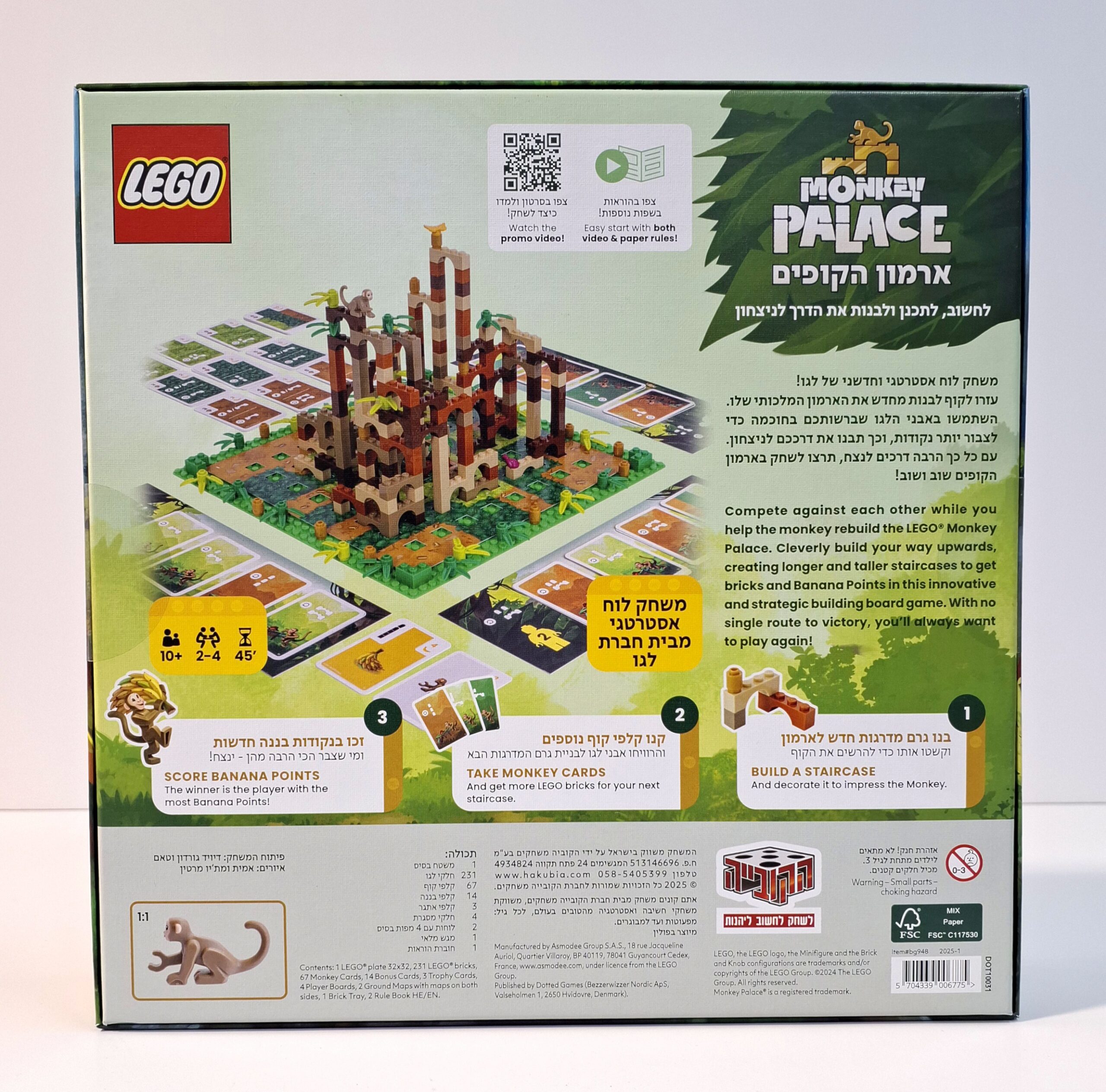 הערכה של משחק הלוח "ארמון הקופים" כוללת: