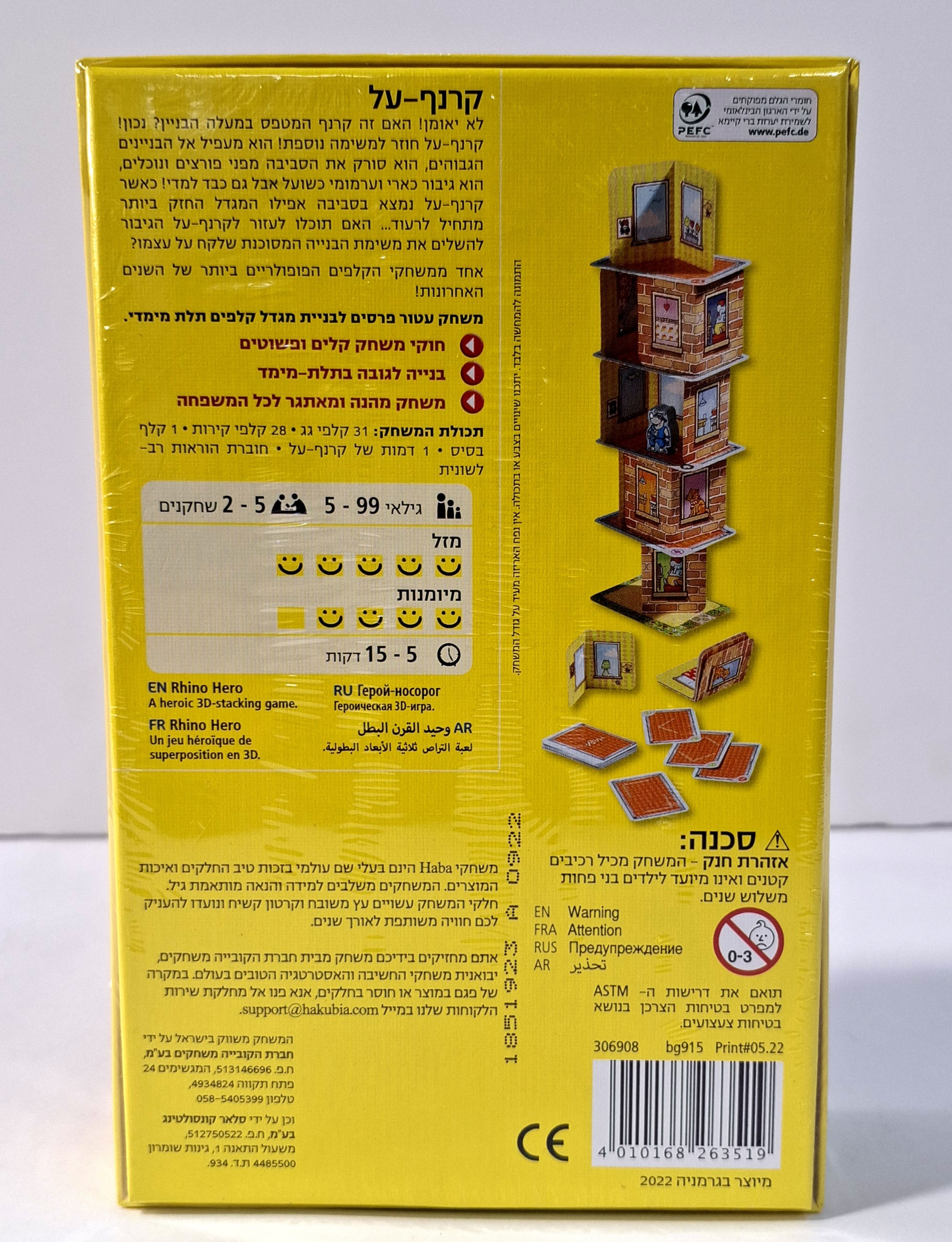 קרנף-על הוא משחק מרתק לכל המשפחה, המשלב אסטרטגיה, יציבות וזריזות ידיים. במשחק זה, עליכם לעזור לקרנף הסופר-גיבור לטפס מעלה במגדל הקלפים מבלי לגרום לו ליפול!