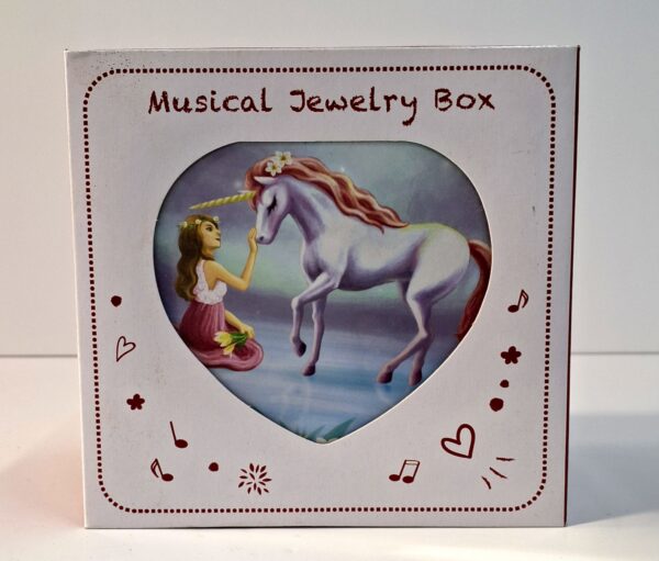 התיבה מעוצבת בצורת לב רומנטית וכוללת איור של חד-קרן על המכסה. עם פתיחתה, דמות חד-קרן קטנה מסתובבת לצלילי מנגינה עדינה ומרגיעה.